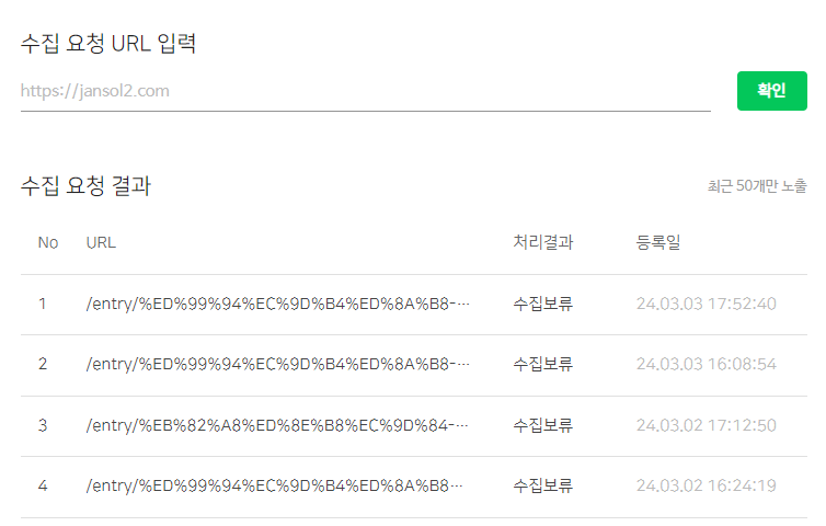 네이버 서치 어드바이저 수집 보류 문제 해결
