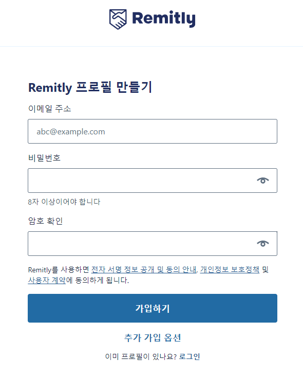 회원 가입 및 로그인: Remitly 웹사이트나 모바일 앱에서 회원 가입을 하고 로그인합니다.